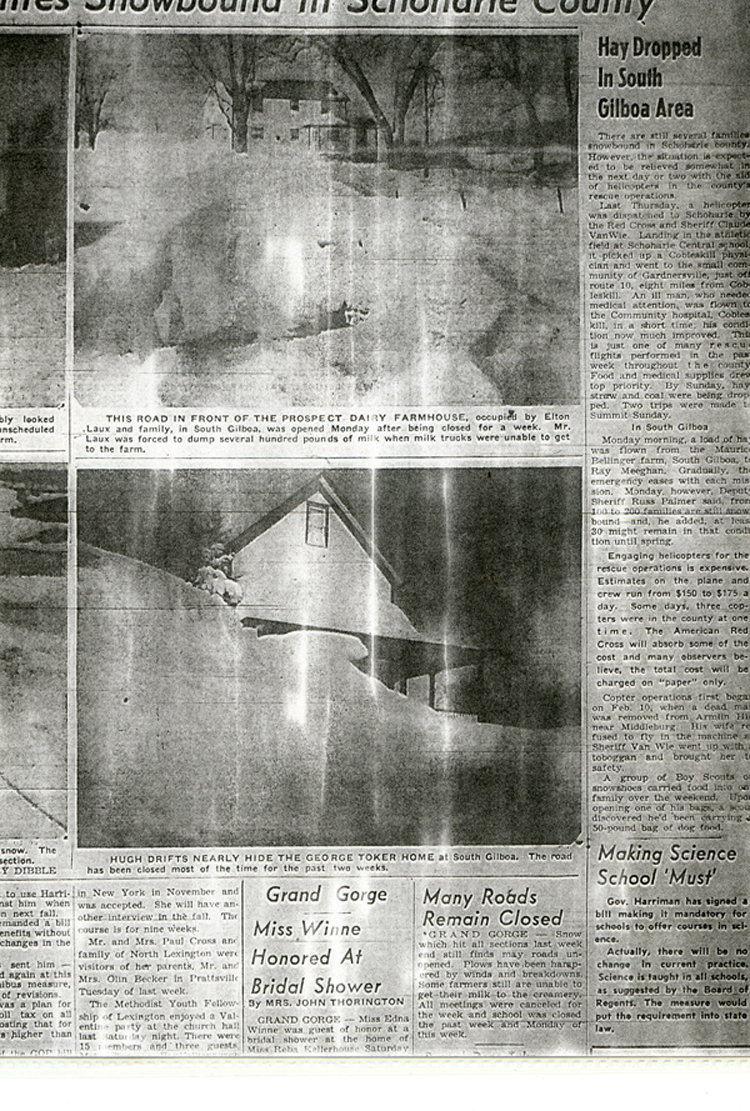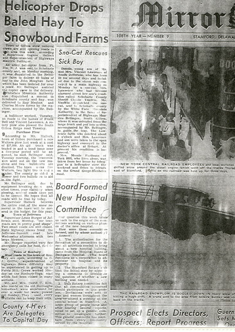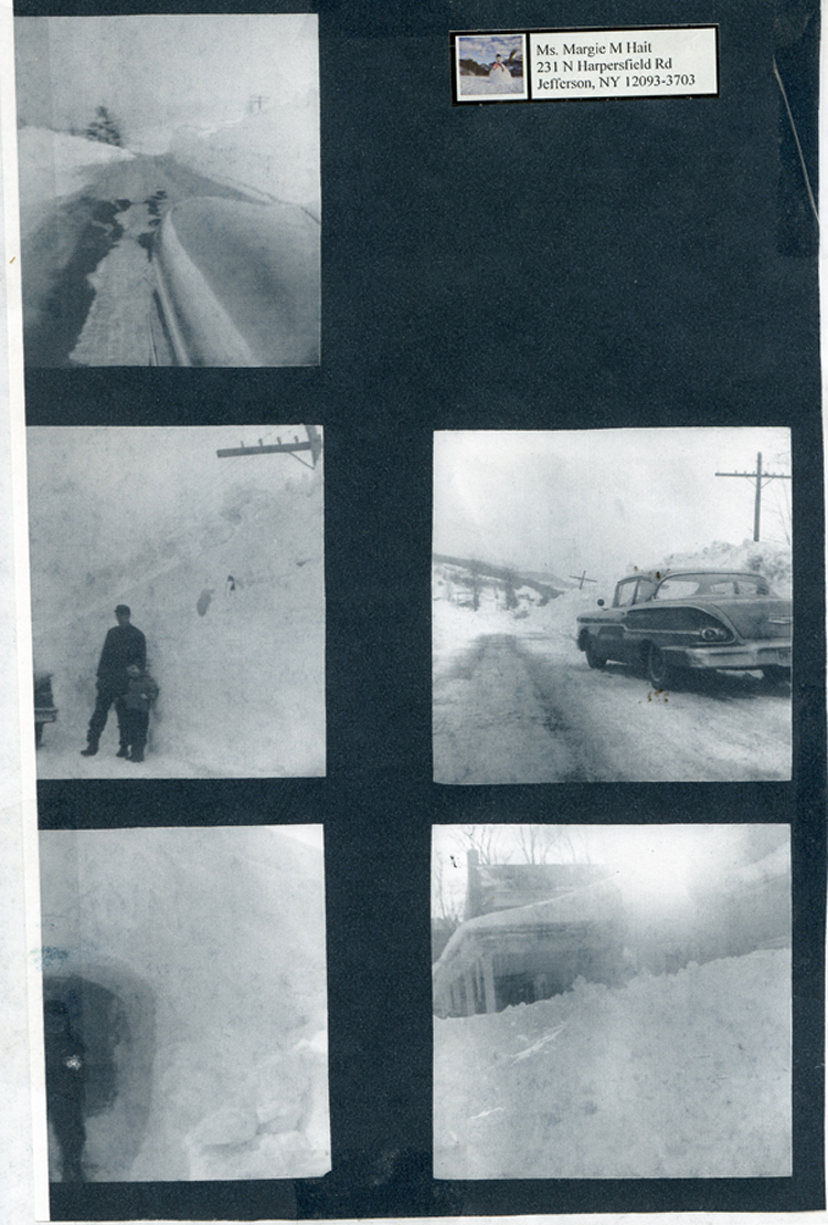 The Snow of 1958 left 7 feet of snow in 14 days. The Jefferson Historical Society hosted a discussion on the blizzard of '58 at the Jefferson Town Hall on January 30, 2011. Contributors included Martin and Albert Peraglie, Adolph Laubmeier, Margie Hait, Phil Harris, Ed and Janet Bailey Foote, and others. The moderator was Charlie Buck, and this link is to the recording and pictures of that meeting. Please credit the Jefferson Historical Society, Charlie Buck, and the contributors at the Jefferson Town Hall discussion of January 30, 2011 ; and let us know of your use of this presentation.